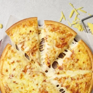 Tầng trên là lớp phô mai vàng óng thơm dẻo như mời gọi, tầng dưới là lớp sốt cà chua trung hòa với vị béo của phô mai Mozarella giúp chiếc pizza không bị ngấy.